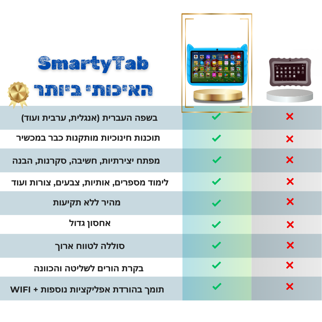 תנו לילדכם ליהנות מחוויית למידה ייחודית עם טאבלט סמארטי שעוצב במיוחד לפיתוח חשיבה ולחידוד מיומנויות בדרך יצירתית ומהנה!